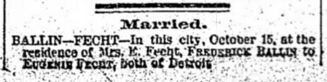| Death of a sister | Augusta Victoria Fecht February 2, 1896 (Age 48 years) Cause: Typhoid (from bad milk) |