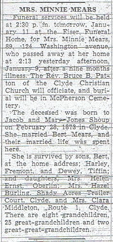 Hazel Abygail Mears Birth: February 4, 1895 28 22 — OH Death: December 25, 1969 — Fremont, OH |