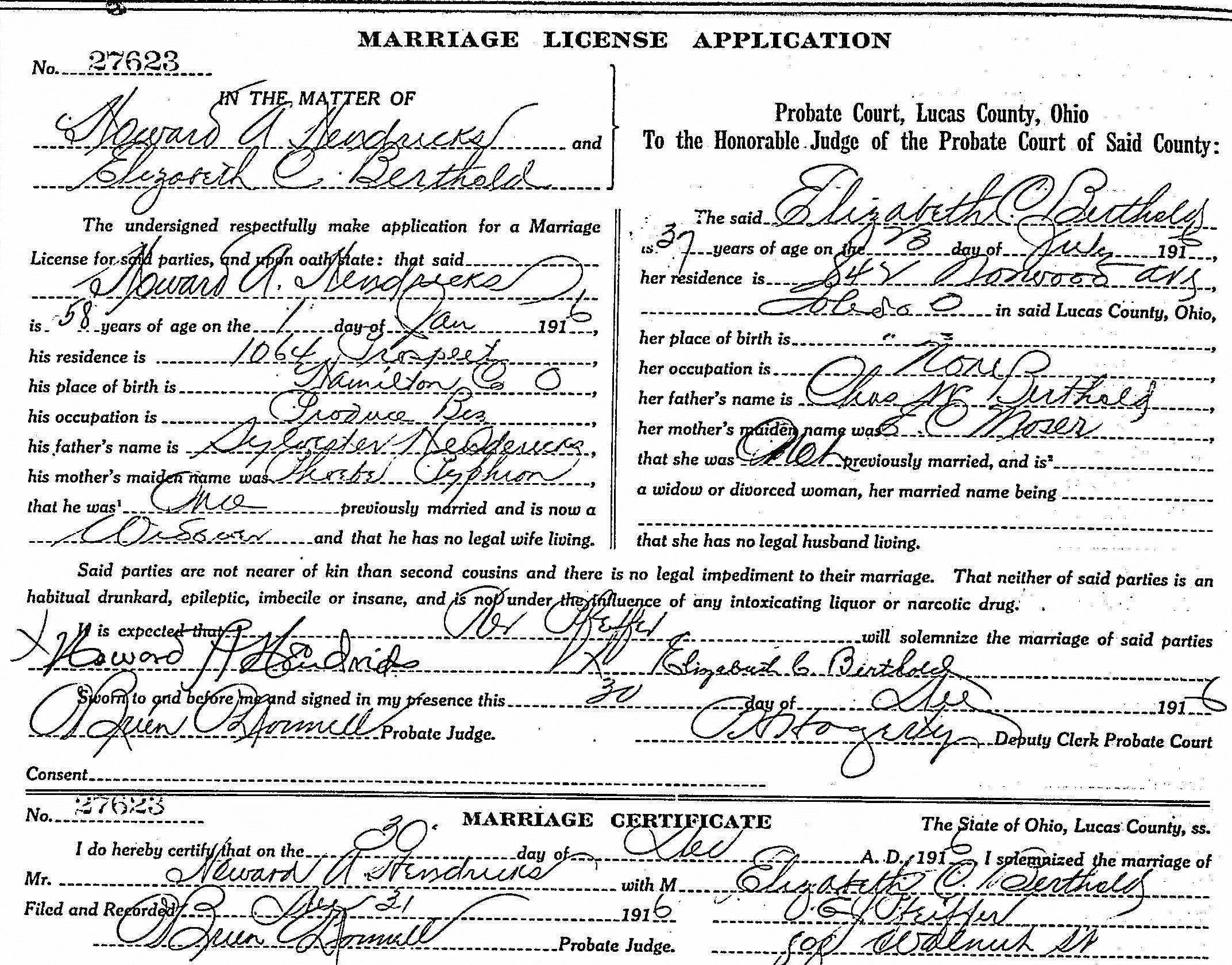 William Hendricks Birth: September 22, 1861 33 24 — Hamilton co., OH |