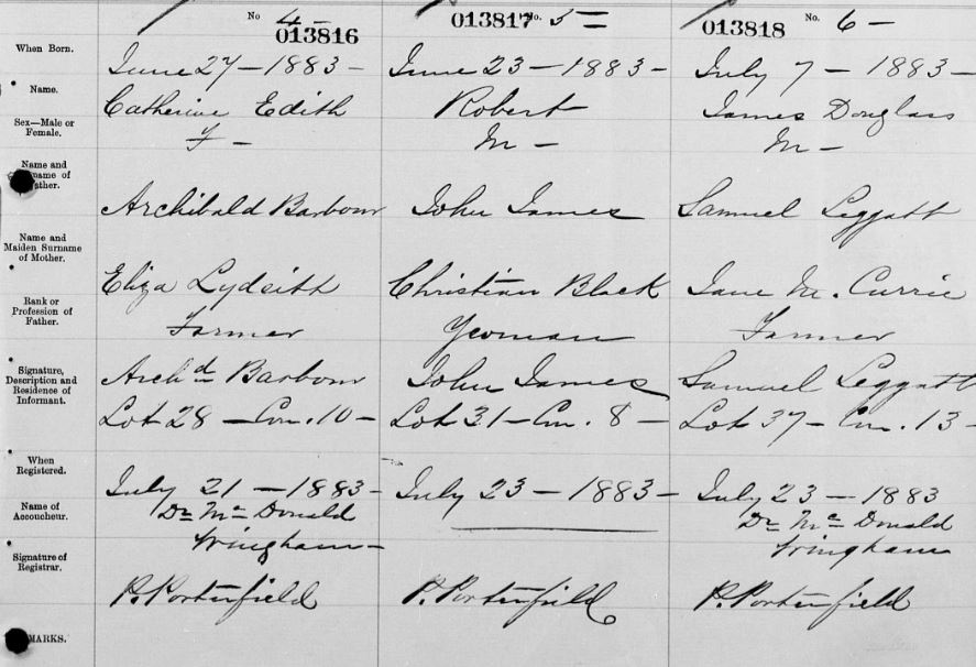 | Death of a maternal grandfather | Dougal Black June 11, 1880 (Age 10 years) Cause: Inflammation of lungs |