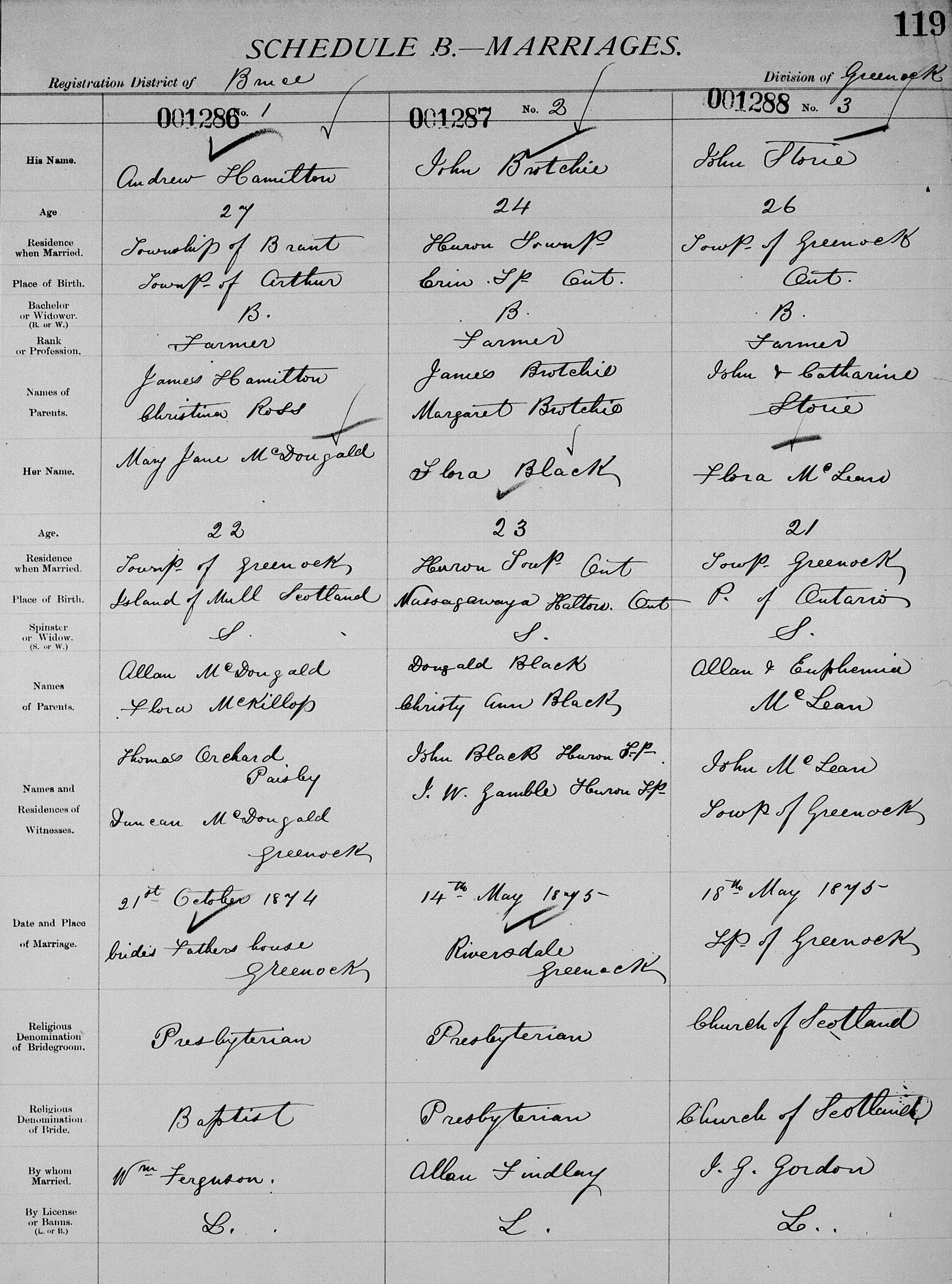 Marriage: May 14, 1875 — Riversdale-Greenock, ON |