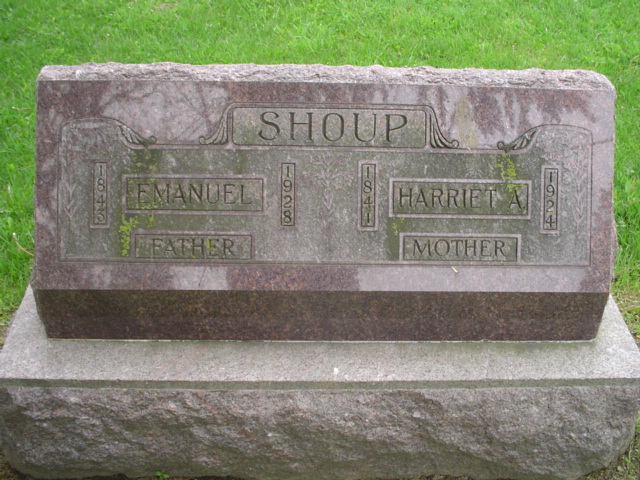 | Note | 18 Nov 1860 Defiance Co., OH (b 16 May 1831 Portage Co., OH d 23 Apr 1928 Defiance Co., OH b 25 Apr 1928 Independence Cemetery, Richland Twp, Defiance Co., OH. Fa Henry Shuup b Swit mot Betsy Behringer b Germany) per FS.org |