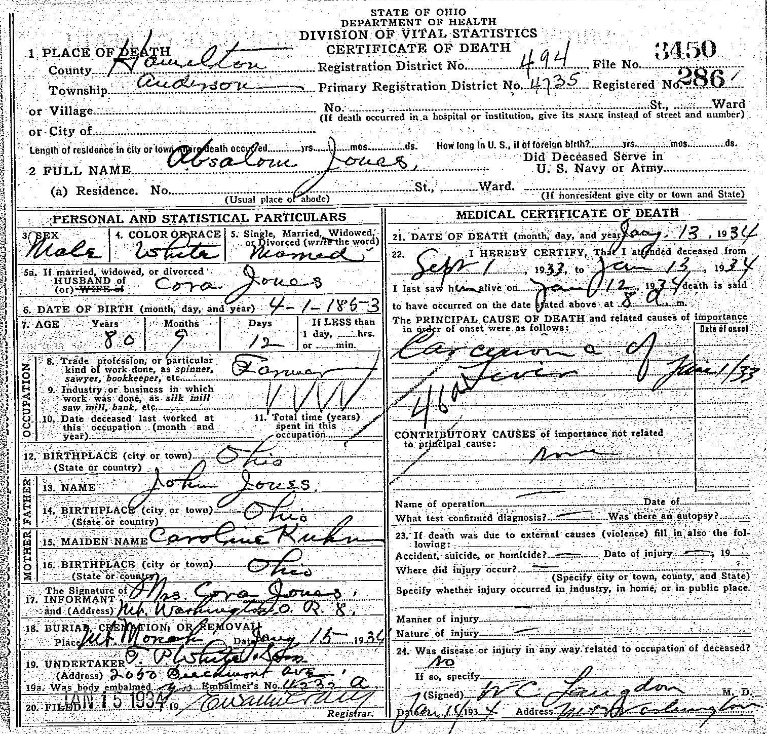Etta D. Jones Birth: October 15, 1872 26 20 — Union, OH |