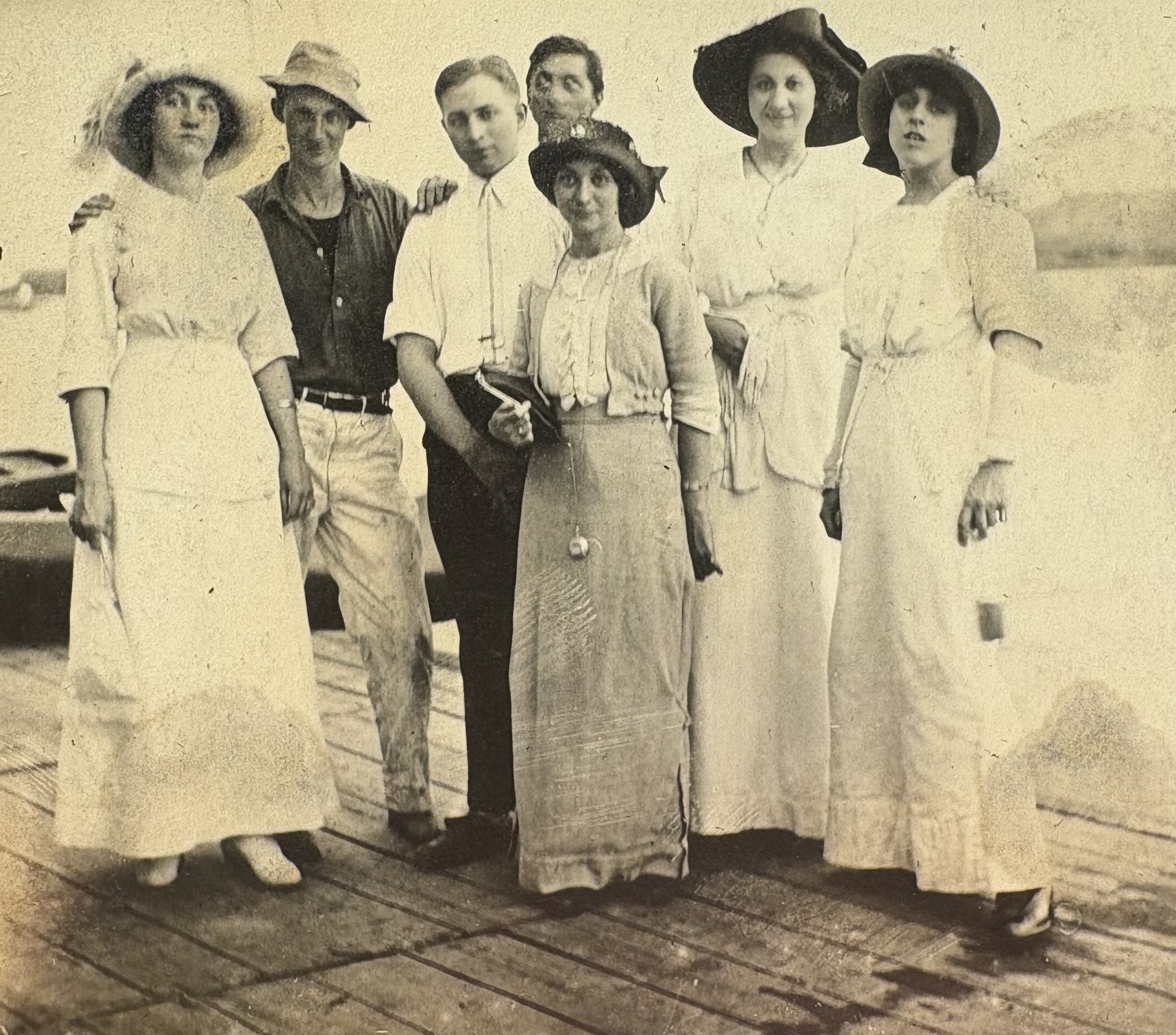 | Media object | Sussmans & Fechts.JPG Format: image/jpeg Image dimensions: 2,522 × 2,220 pixels File size: 1,983 KB Type: Photo Note: from left: Irma Sussman, Bob Sussman, Edwin Fecht (?), Art Sussman, Gertrude Fecht, Edith Sussman, Helen Fecht. Photo taken in 1913.