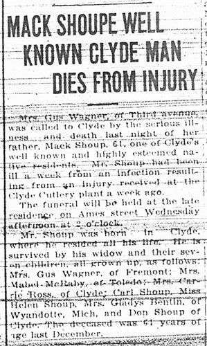 | Death of a brother | Melvin C. Shoup August 22, 1915 (Age 49 years) Cause: Cerebral hemorrage |