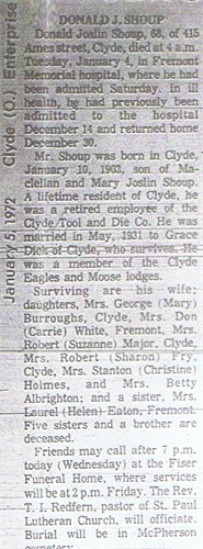 | Death of a father | McClellan K. “Mack” Shoup June 28, 1926 (Age 22 years) Cause: Infected wound from accident |