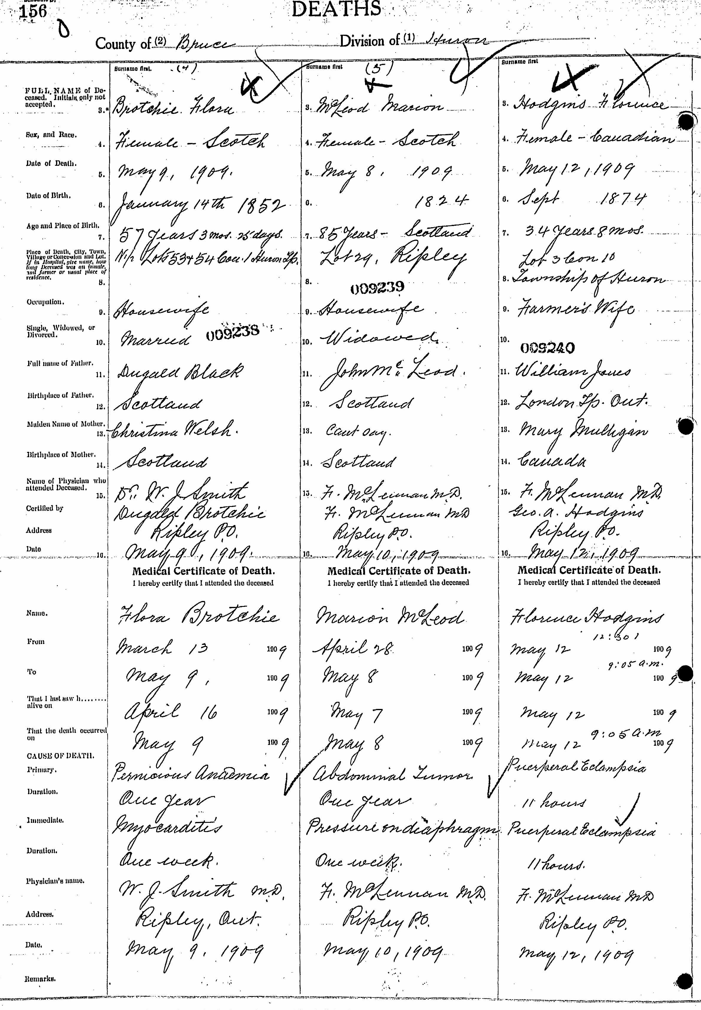 | Death of a wife | Flora Black May 9, 1909 (Age 58 years) |
