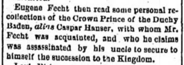 | Note | Was a lawyer in Baden, but engaged in the German Uprisings of 1850. Was tried & convicted of treason. Fled to the U.S. to escape persecution. Eugene was a lawyer in Detroit and was appointed a judge (justice of the peace) in 1859. His sentence in Baden: FINDINGS. [City of Mosbach] No. 33764. The elusive person Eugen Fecht von Stein, that participated in the most recent highly treasonous insurgence, did not follow the court request to return within the given time. This person is therefore declared, on the ground of ¶ 9 letter b. d. of the VI constitution from June 4th 1808 related to the punishment of various social classes, as a persistent fugitive of the country, as having no right to citizenship. Mosbach, August 12th 1850. Main court. |